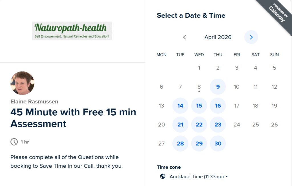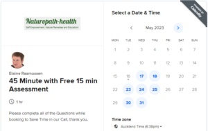 Schedule a 45 Minute Consultation with an initial 15 Minute Free “Health and Wellbeing Assessment” with me if you would like my advice, support or help in any type of Health related area.